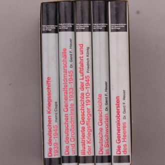 Inhalt: Die deutsche Kriegsschiffe 1939-1945, Die deutschen Generalfeldmarschälle und Großadmirale 1933-1945, Illustrierte Geschichte der Luftfahrt und der Kriegsflieger 1910-1945, Deutsche Geschichte in Stichworten, Die Generalobersten des Heeres, u.v.m.