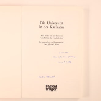Das Buch bietet eine satirische Darstellung der Universitätsgeschichte durch Karikaturen und kommentiert gesellschaftliche Missstände und Bildungspolitiken im Laufe der Zeit.