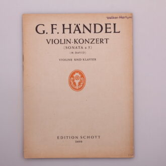 Kurzbeschreibung: Für eine Solo- Violine und andere Instrumente. Orchestermaterial: Partitur (zugleich Cembalostimme) Edition Schott 3309. Orchesterstimmen einzeln (Streicher, 2 Oboen ad lib.)